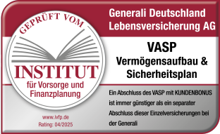 Mit dem Vermögensaufbau & Sicherheitsplan der Generali Deutschland Lebensversicherung können Sie eine attraktive, lebenslange Rente aufbauen. Dazu stehen Ihnen Bausteine wie Vermögensaufbau, Arbeitskraftabsicherung, Schwere-Krankheiten-Absicherung, Hinterbliebenenabsicherung und Pflegeabsicherung zur Verfügung. Das schafft Planungssicherheit, auch wenn Sie über 100 Jahre alt werden.