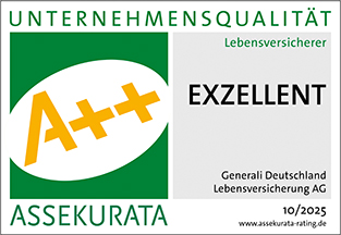 Assekurata zeichnet die Generali Deutschland Lebensversicherung mit einem A++ („Exzellent“) aus. Weitere Informationen hierzu finden Sie hier.