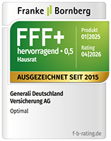 Die unabhängige Ratingagentur Franke & Bornberg hat die Hausratversicherung Optimal mit der Höchstbewertung FFF+ „hervorragend“ ausgezeichnet.