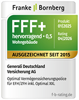 Die unabhängige Ratingagentur Franke & Bornberg hat die Wohngebäudeversicherung Optimal für Ein- und Zweifamilienhäuser inklusive Optimal XXL mit der Höchstbewertung von FFF+ „hervorragend“ ausgezeichnet.