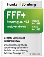 Die unabhängige Ratingagentur Franke & Bornberg hat die Dynamische Sach-Inhaltsversicherung mit der Höchstbewertung FFF+ „hervorragend“ ausgezeichnet.