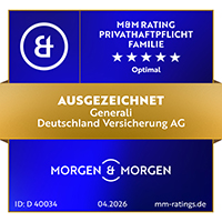 Die Privathafpflichtversicherung Optimal für Familien der Generali wurde von dem unabhängigen Finanzanaylysten MORGEN & MORGEN mit der Höchstbewertung (5 Sterne) ausgezeichnet. Hier erfahren Sie mehr: MORGEN & MORGEN