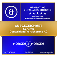 Die Unfallversicherung Unfall Aktiv der Generali wurde von dem unabhängigen Finanzanaylysten MORGEN & MORGEN mit der Höchstbewertung (5 Sterne) ausgezeichnet. Hier erfahren Sie mehr: MORGEN & MORGEN