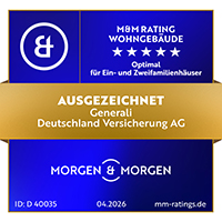 Die Wohngebäudeversicherung Optimal für Ein- und Zweifamilienhäuser der Generali wurde von dem unabhängigen Finanzanaylysten MORGEN & MORGEN mit der Höchstbewertung (5 Sterne) ausgezeichnet. Hier erfahren Sie mehr: MORGEN & MORGEN